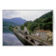Een trein passeert langs de Serchio-rivier in Noord-Italië bij Barga.