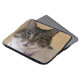 De mooie kustkat genaamd Ivey voor een oranje achtergrond. Deze foto is genomen door Robin Greynolds.