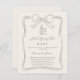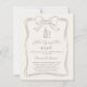 A soft ivory colored background, decorated with a hand drawn taupe colored bow. Personalize and add a name and party details.