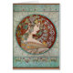 Design Art nouveau vintage de femme aux accents de lierre et de guirlande sur un arrière - plan bleu pâle. Beaux-arts du peintre tchèque Alfons (Alphonse) Mucha.