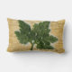 Een kussen met een "houten" oppervlak, met visbladeren op de voorkant en een geranium 9herb robert) blad op de achterkant