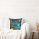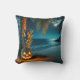Een gloeiende ananas gesneden als een jack-o-lantaarn zit op een maanverlicht tropisch strand onder een palmbomen