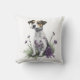 Dit gooi kussen vangt een rustig moment van natuur's harmonie, met een Jack Russell hond zitten in contemplatie tussen paarse bloemen.