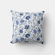 Jacobean stijl bloemenpatroon ontwerp in contrasterende blues op een witte achtergrond.