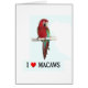 Un macaw à aile verte est montré avec le texte "I love macaw"
