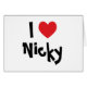 Design "I Love Nicky" avec un coeur et une police funky. Si vous ne trouvez pas le nom que vous voulez customiser ce design pour créer votre propre cadeau.