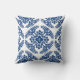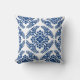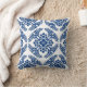 Gooi kussen in een klassiek Japans kimonopatroon van gestileerde, vierwegs, miljoenen bladeren en bloemen in diep kobalt blauw op een witte achtergrond