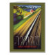 Affiche de voyage vintage pour le Japon par les chemins de fer du gouvernement japonais montrant un flou paysager qui laisse la vitesse de leurs trains à travers la campagne.