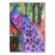 A la recherche d'un paon exotique ? dans cet art paon, un paon bleu violet & saphir se dresse sur un pied d'arbre en bois dans une magnifique prairie remplie de coraux et de fleurs sauvages roses. Les plumes de Peacock sont des nuances de phlox et d'orchidée avec de nombreux marron pour compléter les couleurs riches. L'arrière - plan a également des arbres bruns stériles avec des verdure de cèdre et des jaunes de bambou au-delà. Conçu par l'aquarelle Miriam Schulman