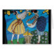 Illustration de haute couture Art Déco française vibre et classe avec de belles dames rassemblant des pommes de l'arbre en été, noir blanc, jaune, bleu aqua, couleurs vertes .Cool, design moderne et artistique.