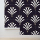 1920s Art Deco geïnspireerd palmetto bladeren waaierpatroon in wit met bronsgele accenten. De achtergrond is donkermarineblauw.