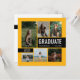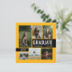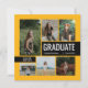 La carte de faire-part de remise de diplômes élégante et l'invitation de la fête comportent six photos senior avec "GRADUATE" comme grand point focal. Personnalisez le texte personnalisé moderne avec le nom de votre élève, l'école et l'année de classe. Cette carte recto verso comprend le libellé de l'invitation de la partie de graduation au verso. Customisez les couleurs du cadre d'image et des boîtes à l'avant et les boîtes à l'arrière pour correspondre aux couleurs de votre école ou coordonner avec la photographie. Disponible dans les combinaisons de couleurs scolaires les plus populaires et les plus courantes - vert/jaune, rouge/jaune, rouge/or, bleu/jaune, bleu/or, noir/or, violet/jaune, rouge/argent et rouge/noir. Produits correspondants et autres couleurs disponibles.