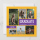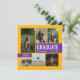 La carte de faire-part de remise de diplômes élégante et l'invitation de la fête comportent six photos senior avec "GRADUATE" comme grand point focal. Personnalisez le texte personnalisé moderne avec le nom de votre élève, l'école et l'année de classe. Cette carte recto verso comprend le libellé de l'invitation de la partie de graduation au verso. Customisez les couleurs du cadre d'image et des boîtes à l'avant et les boîtes à l'arrière pour correspondre aux couleurs de votre école ou coordonner avec la photographie. Disponible dans les combinaisons de couleurs les plus populaires et les plus courantes de l'école - vert/jaune, rouge/jaune, rouge/or, bleu/jaune, bleu/jaune, bleu/or, noir/or, noir/jaune, violet/jaune, rouge/argent et rouge/noir. Produits correspondants et autres couleurs disponibles.