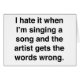 Je le déteste quand je chante une chanson et l'artiste obtient les mots faux