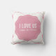 Un mignon coussin aux coeurs et crêtes roses, avec les mots "Je nous aime". N'hésitez pas à changer le sentiment pour l'occasion. Personnalisez le coussin avec votre nom et celui de votre partenaire. Cela ferait un grand anniversaire de mariage ou un cadeau de la Saint-Valentin.