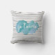 Je T'aime grafische waterverf kussen met trendy zwarte en witte strepen en een blauw en blauwgroen waterverf effect.