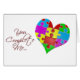 Laat ze niet 'puzzelen' over hoeveel ze voor je betekenen. In dit ontwerp staat alles: "Je maakt me compleet." Vun, helder gekleurde puzzelstukjes zijn klaar om een hart te creëer. Ideaal voor Valentijnsdag of gewoon om ze te shows hoeveel je van ze houdt.