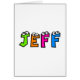 Drôle caractère de dessin animé avec les yeux de bande dessinée épelant le nom des garçons JEFF short pour JEFFREY. Trouvez d'autres noms dans cette série. Customisez facilement et choisissez votre propre couleur arrière - plan. Image disponible sur divers cadeaux et produits.
