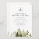 Deze bachelorette-uitnodiging en de rondweg-sjabloon zijn uitgerust met rotsachtige waterverf-pijnbomen en een roestachtig handgeschreven lettertype. Bewerk eenvoudig alle formuleringen en lettertypen om aan de behoeften van uw gebeurtenis te voldoen. Deze uitnodiging is ideaal voor je bos of berg themed bach weekend.