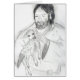 Croquis noir et blanc tiré par la main de crayon de Jésus dans une robe longue tenant un petit agneau.