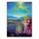 Levendige symbolieke olieverf op hout in roze, paarse, rode, blauwe, gele kleuren - Geïnspireerd van St. John, 21-. Origineel schilderij van Alessandro Lumini 2011.