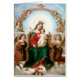 Een prachtig afbeelding van de Maagd Maagd Mary Koningin der Hemden op haar troon met Jezus op haar knie en de engelen in verering.
