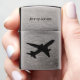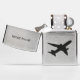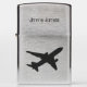Silhouette van een straalvliegtuig dat boven de grond opstijgt.