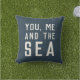 Voeg een coole nautische stijl toe aan uw patio-, strandhuis- of poolgebied met onze buitenste kussens in rijk blauw van de marine, met het citaat "u, mij en het zee" in ongewisse letters.