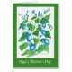 Une jolie carte de voeux fleurie pour la Fête des Mères avec des fleurs de couleur bleu clair Morning Glory sur un arrière - plan blanc avec une bordure verte assortie et des lettrages blancs élégants. Le design est une aquarelle peinte à la main par Judy Adamson et vous pouvez personnaliser le message intérieur.