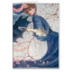 Elle a une robe de bleu royal et un casquette avec l'équilibre rose. Les fleurs de cerisier sont l'arrière - plan. C'est tout à fait une image et un public domain.