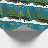 Festief en uniek ontwerp van Melissa J Barrett met stierenmolen en elanden met rode kerstmantels als ze samen door het bos van de pijnbomen wandelen. Omvat de woorden "Wees blij".