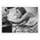 Jonge vrouw die op bed ligt, licht uitzet op nachttafeltje (B&W), verhoogd uitzicht. Auteursrecht: George Marks