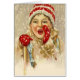 grafische illustratie met een jongen in de sneeuw. Hij draagt rode wanten en rood en wit gebreid pet.