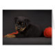 rottweiler chiot de 1,5 mois joue avec la balle de fil rouge
