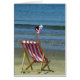 Une belle scène estivale, avec un petit enfant jouant dans la mer devant un traditionnel transat à rayures. Parfait pour toutes les occasions, laissé vide pour votre propre message ou personnalisation.