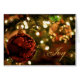 Gros plan de la boule rouge de Noël qui orne un bel arbre de vacances. L'intérieur dit Joyeux Noël et Bonne Année