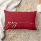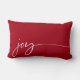 Deze eenvoudige en minimalistische groet van "vreugde" is voorzien van elegante witte, met de hand geschreven scripttypografie op een rode kerstachtergrond. De achtergrondkleur is aanpasbaar. Je zult het geweldig vinden om deze mooie kussen mee te nemen voor het kerstvakantieseizoen.