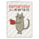 Le salut d'anniversaire amusant de "Moi et le chat" suggère de venir à "craquer" une boîte de Fancy Fast.