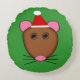 Ce magnifique coussin rond présente un dessin amusant d'une souris de Noël aux grands yeux ronds, aux oreilles roses, un petit nez rose et de mignons petits whiskies torride. La souris porte un chapeau de Père Noël rouge et blanc prêt pour Noël.