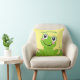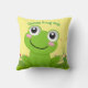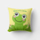 Joyeux coussin de grenouille, arrière - plan jaune pâle. Idéal pour la chambre d'un enfant. Le texte est modifiable pour que vous puissiez ajouter vos propres messages avant et arrière.