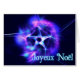 Image fractale violette et bleue d'une étoile à cinq branches dans un tourbillon de couleur environnant ; le tout sur un arrière - plan sombre. Le texte français "Joyeux Noё l" apparaît en bleu et blanc éclatant.