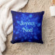 Een zwerm blauwe fractale sneeuwvlokken. Franse tekst, "Joyeux Noёl" verschijnt in gloeiend blauw en wit. Voeg je eigen extra tekst toe aan de achterkant.