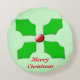 Ce magnifique coussin rond dispose de quatre feuilles sacrés, accompagnés d'une baie rouge, pour les joindre. La baie semble briller dans la lumière et les feuilles ont une qualité 3D pour eux. Il existe un texte personnalisable qui dit "Joyeux Noël" vous permettant de personnaliser ce design.