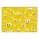 Belle illustration de nombreuses empreintes transparentes avec des visages heureux placés contre un arrière - plan jaune vif. Image disponible sur divers cadeaux et produits.