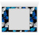 Realistische, blauwe en witte vlinders naadloos op zwarte achtergrond.