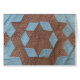 Kantel blok in bruin en blauw "kasteel" patroon. Het centrale "kasteel" is een bruine stervorm, omgeven door de "zeszijdige muur" met de "horlogetorens" die zich uitstrekken van het midden van de muren. In de tekst staat "Warm gedachte voor u" in een "stitch"-lettertype (kan gepersonaliseerd zijn).