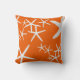 Werp kussen met witte zeester ontwerp. Helder kaki oranje met een strooiing van zeesterren in alle maten. Kies een stof naar behoefte voor binnen of buiten gebruik. Breng een strandhuis / cottage aan zee of appartement bij de zee tot leven met deze unieke interieurdecoratie. Dit ontwerp is ook verkrijgbaar in een reeks kleuren.