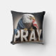 Een majestueuze zeearend is gedrapeerd in een Amerikaanse vlag, boven grote houten letters met de spelling "Bid".