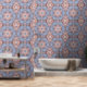 Enjoy this kaleidoscope of morning blue and frosty pink design decorating the walls in your home.