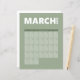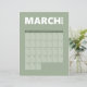 Eenvoudige moderne kalender voor maart 2020 met ruimte op elke dag om uw gebeurtenissen en benoemingen toe te voegen om uw maand te plannen! Zware en vette tekstdoopvont voor de maandnaam waar u binnen kunt kleuren, met een patroon versieren, of als wit weggaan.